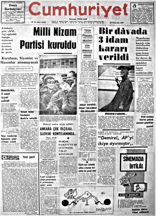 1960 - Üniversitede çıkan olaylarda öğrenci Turan Emeksiz, polis kurşunu ile 20 yaşında öldü. İstanbul ve Ankara’da sıkıyönetim ilan edildi.