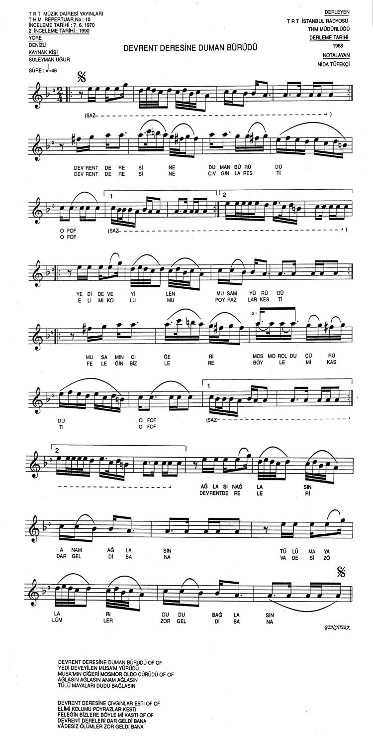 Bu türkünün notasında, sözlerinde veya örnek icrasında bir eksiklik yahut yanlışlık tespit ederseniz, e-mail ile veya WhatsApp hattından bildirim yaparak katkıda bulunabilirsiniz.