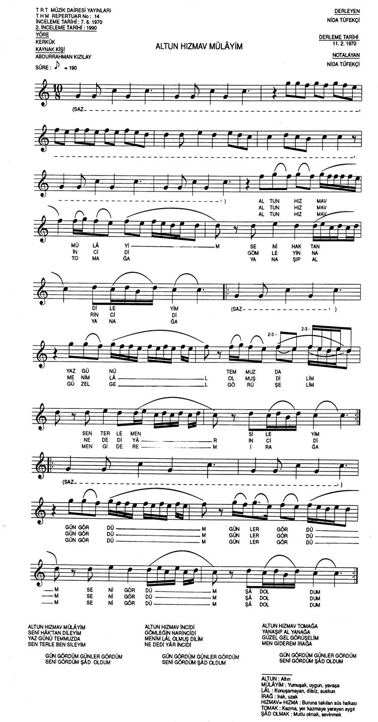 Bu türkünün notasında, sözlerinde veya örnek icrasında bir eksiklik yahut yanlışlık tespit ederseniz, e-mail ile veya WhatsApp hattından bildirim yaparak katkıda bulunabilirsiniz.