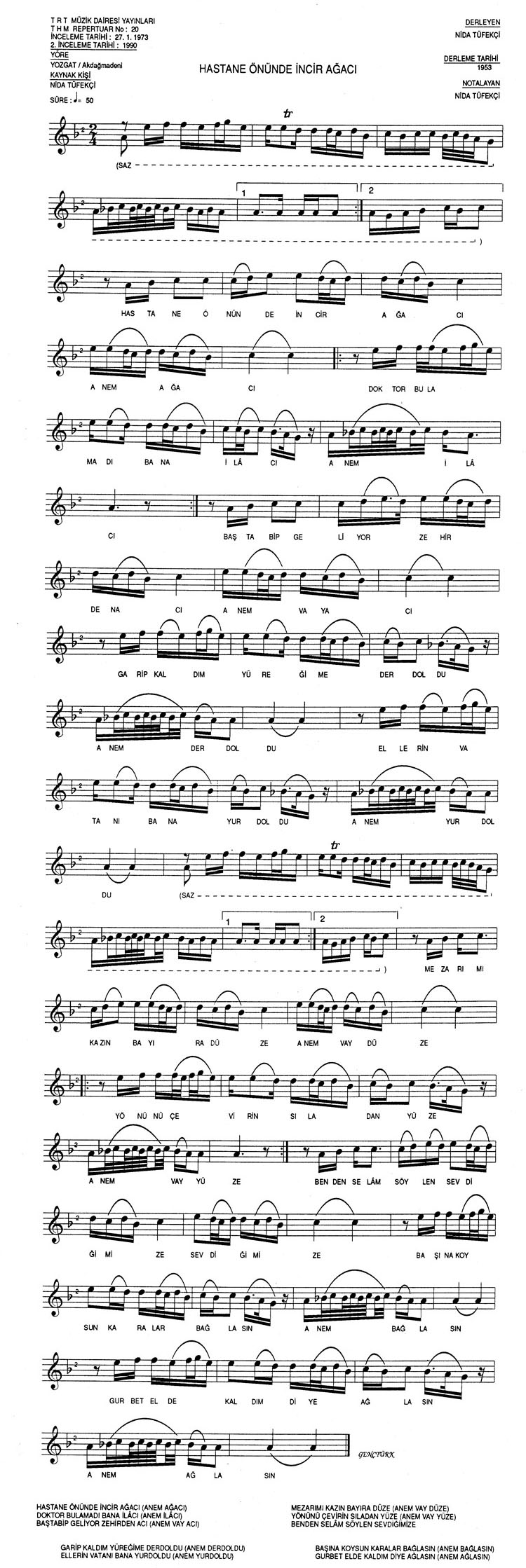 Bu türkünün notasında, sözlerinde veya örnek icrasında bir eksiklik yahut yanlışlık tespit ederseniz, e-mail ile veya WhatsApp hattından bildirim yaparak katkıda bulunabilirsiniz.