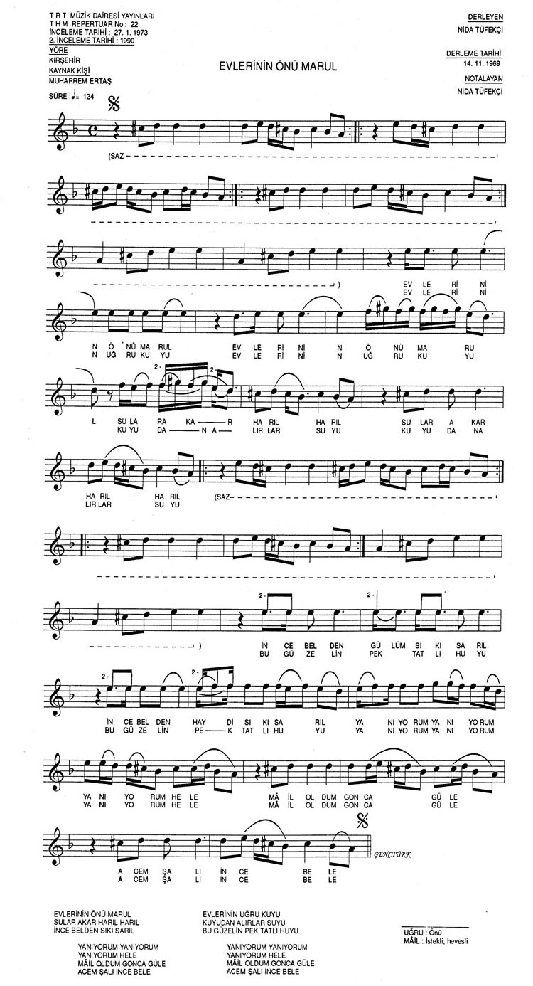 Bu türkünün notasında, sözlerinde veya örnek icrasında bir eksiklik yahut yanlışlık tespit ederseniz, e-mail ile veya WhatsApp hattından bildirim yaparak katkıda bulunabilirsiniz.