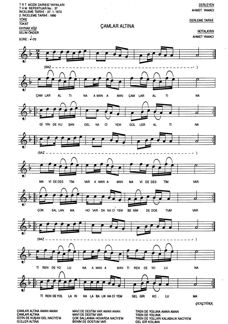 Bu türkünün notasında, sözlerinde veya örnek icrasında bir eksiklik yahut yanlışlık tespit ederseniz, e-mail ile veya WhatsApp hattından bildirim yaparak katkıda bulunabilirsiniz.