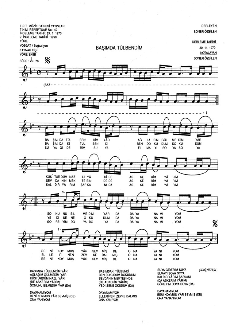 Başımda tülbendim ağladım gülmedim (Rep.No: 49)