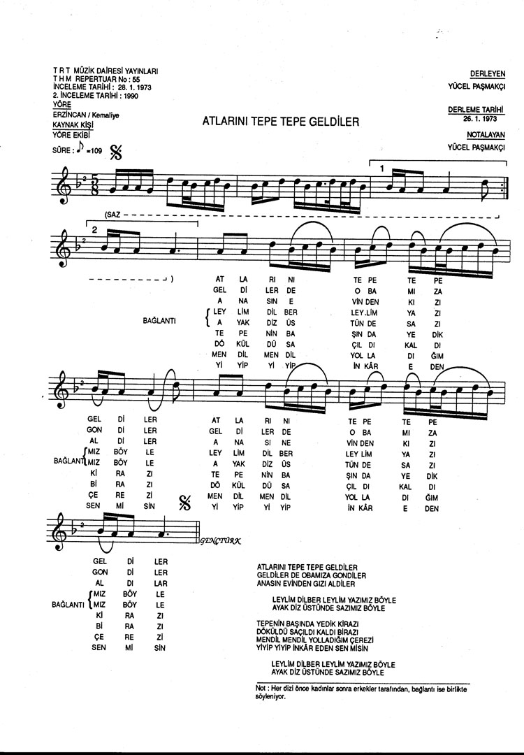 Bu türkünün notasında, sözlerinde veya örnek icrasında bir eksiklik yahut yanlışlık tespit ederseniz, e-mail ile veya WhatsApp hattından bildirim yaparak katkıda bulunabilirsiniz.