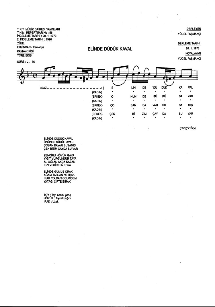 Bu türkünün notasında, sözlerinde veya örnek icrasında bir eksiklik yahut yanlışlık tespit ederseniz, e-mail ile veya WhatsApp hattından bildirim yaparak katkıda bulunabilirsiniz.
