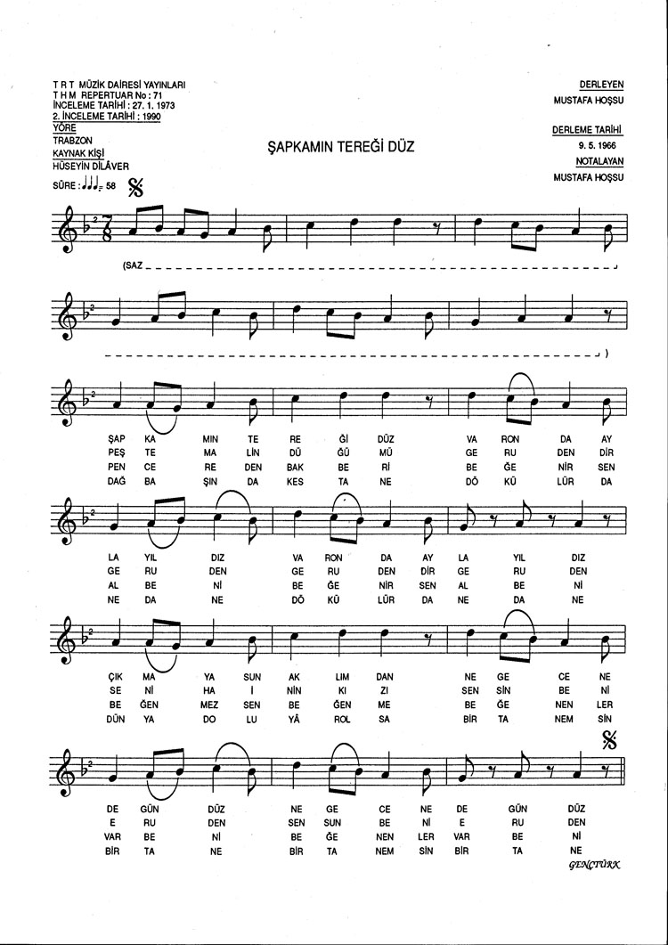 Bu türkünün notasında, sözlerinde veya örnek icrasında bir eksiklik yahut yanlışlık tespit ederseniz, e-mail ile veya WhatsApp hattından bildirim yaparak katkıda bulunabilirsiniz.
