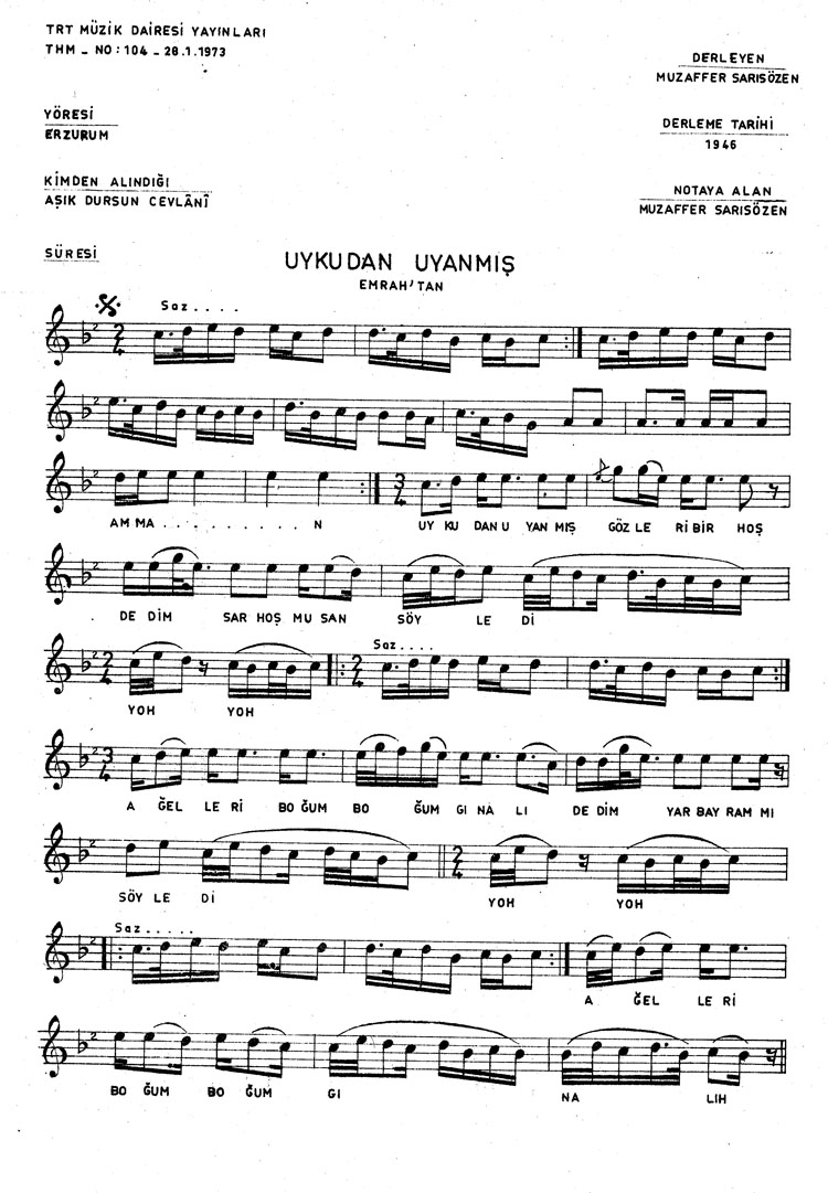 Uykudan uyanmış gözleri bir hoş (Rep.No: 104)