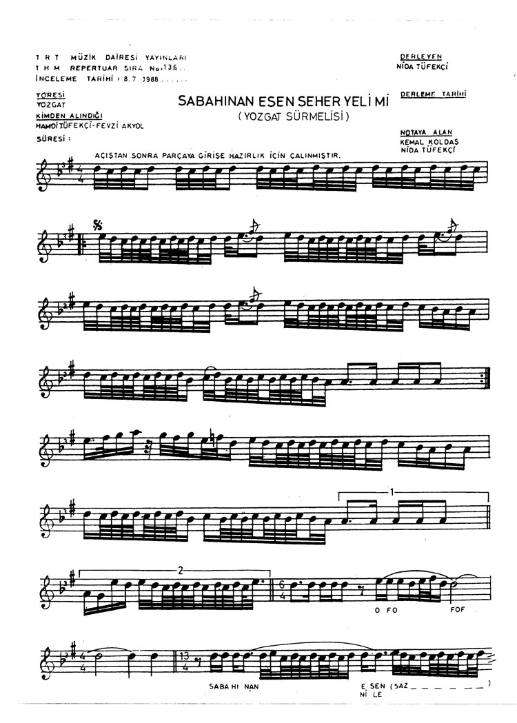 Sabahınan esen seher yeli mi (Rep.No: 136)