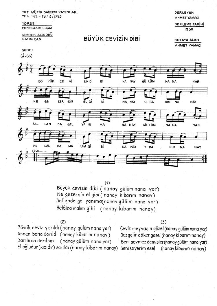 Bu türkünün notasında, sözlerinde veya örnek icrasında bir eksiklik yahut yanlışlık tespit ederseniz, e-mail ile veya WhatsApp hattından bildirim yaparak katkıda bulunabilirsiniz.