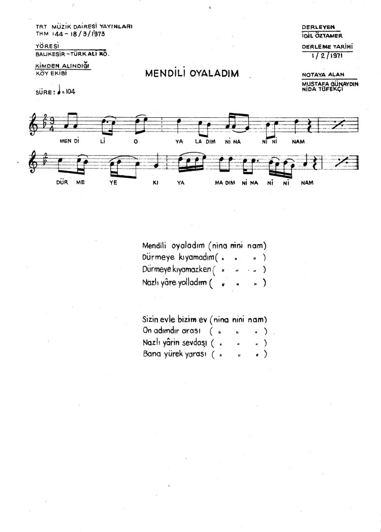 Mendili oyaladım (Rep.No: 144)