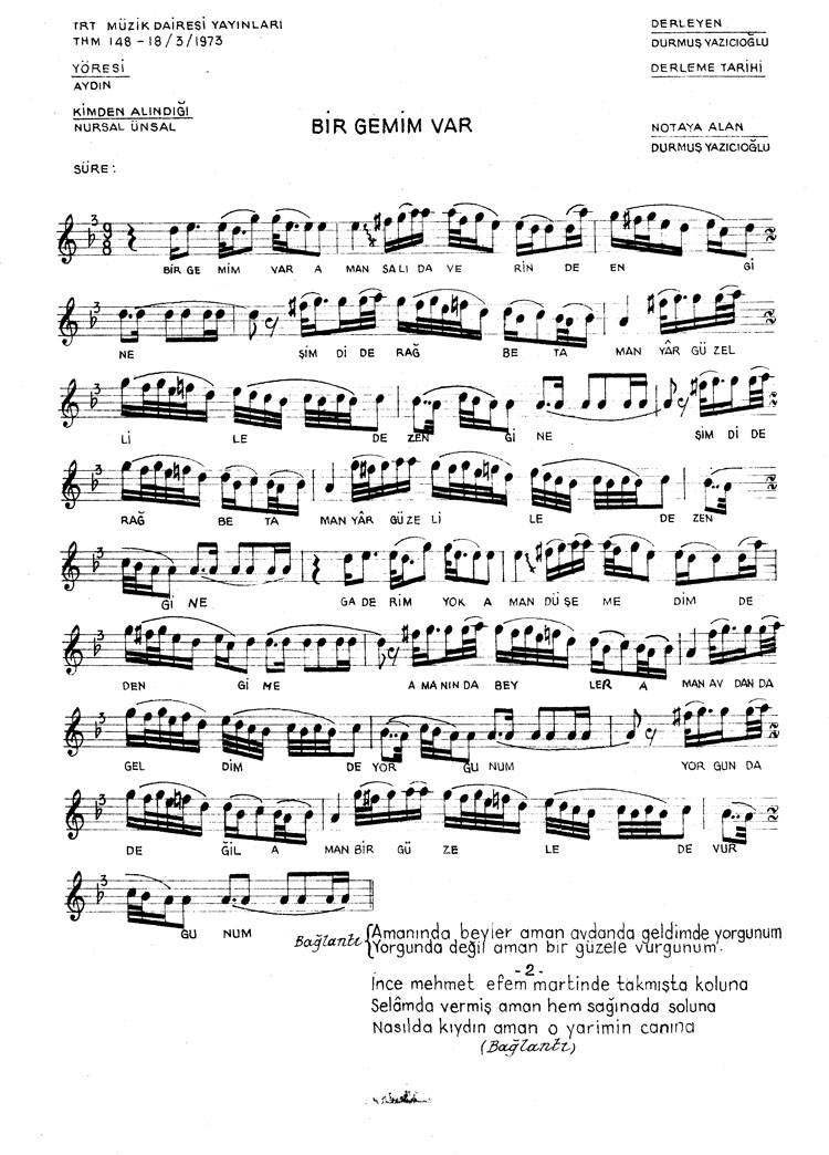 Bu türkünün notasında, sözlerinde veya örnek icrasında bir eksiklik yahut yanlışlık tespit ederseniz, e-mail ile veya WhatsApp hattından bildirim yaparak katkıda bulunabilirsiniz.
