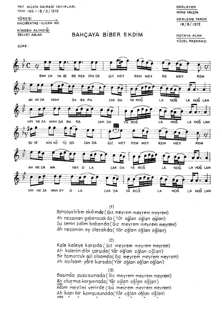 Bahçaya biber ektim (Rep.No: 155)