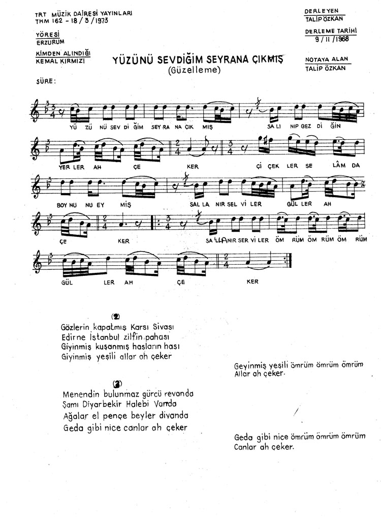 Yüzünü sevdiğim seyrana çıkmış (Rep.No: 162)