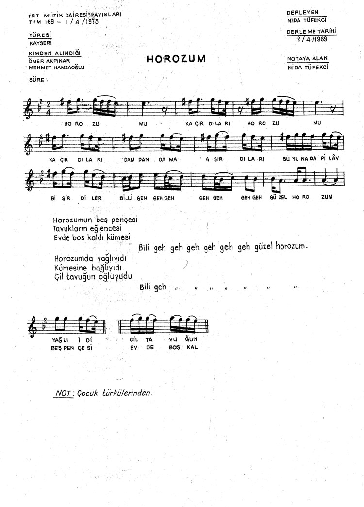Bu türkünün notasında, sözlerinde veya örnek icrasında bir eksiklik yahut yanlışlık tespit ederseniz, e-mail ile veya WhatsApp hattından bildirim yaparak katkıda bulunabilirsiniz.