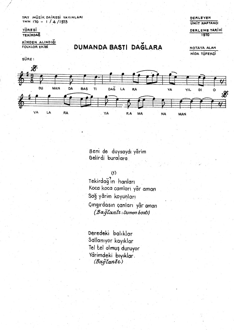 Bu türkünün notasında, sözlerinde veya örnek icrasında bir eksiklik yahut yanlışlık tespit ederseniz, e-mail ile veya WhatsApp hattından bildirim yaparak katkıda bulunabilirsiniz.