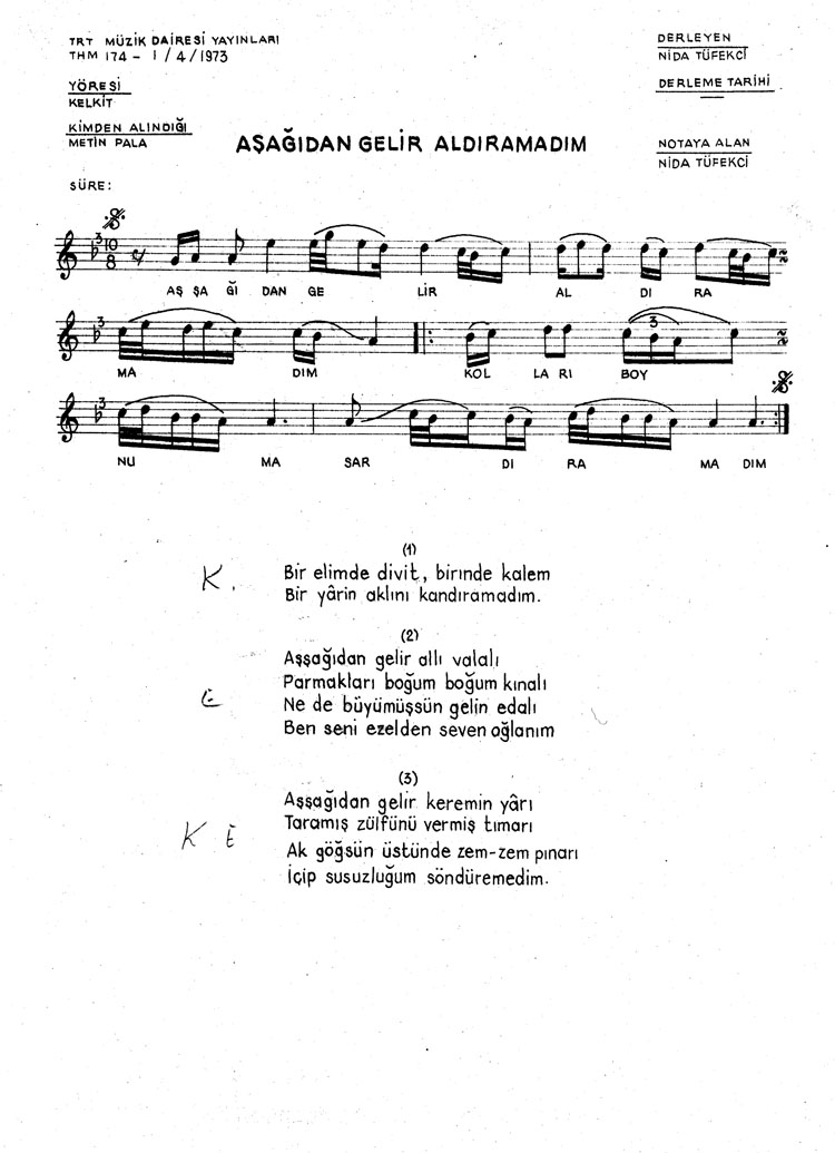 Bu türkünün notasında, sözlerinde veya örnek icrasında bir eksiklik yahut yanlışlık tespit ederseniz, e-mail ile veya WhatsApp hattından bildirim yaparak katkıda bulunabilirsiniz.