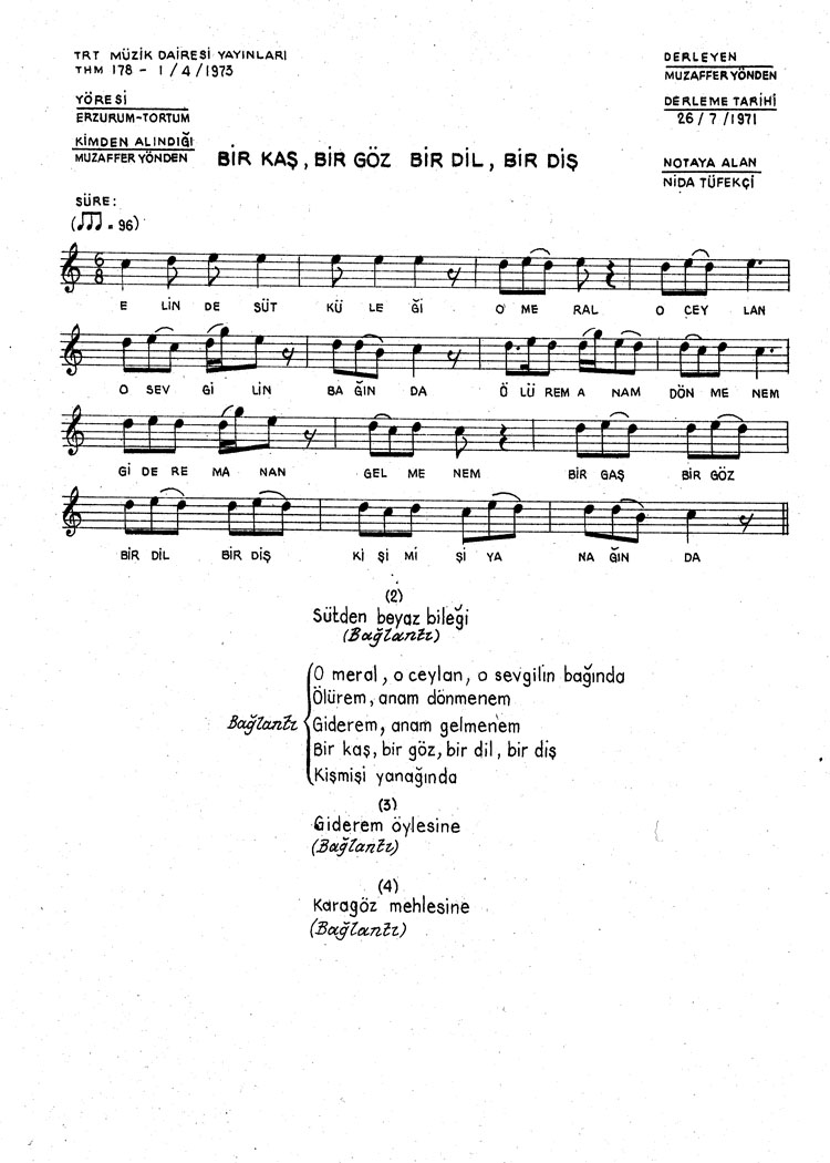 Bu türkünün notasında, sözlerinde veya örnek icrasında bir eksiklik yahut yanlışlık tespit ederseniz, e-mail ile veya WhatsApp hattından bildirim yaparak katkıda bulunabilirsiniz.
