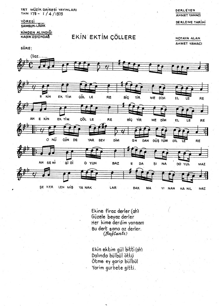 Ekin ektim çöllere (Rep.No: 179)