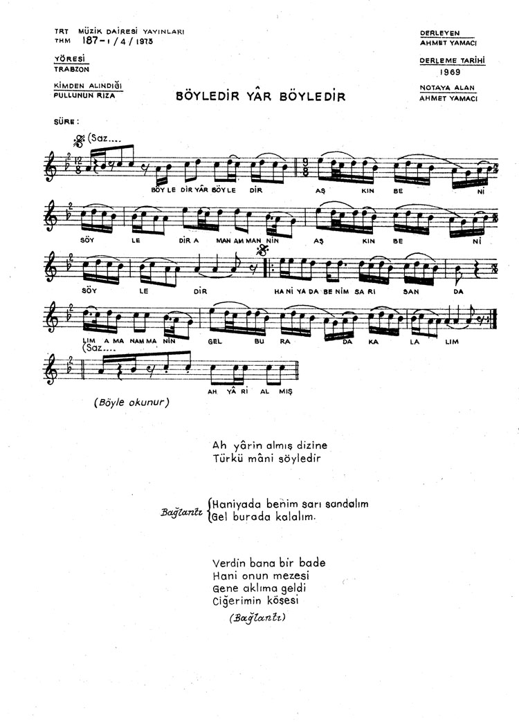 Bu türkünün notasında, sözlerinde veya örnek icrasında bir eksiklik yahut yanlışlık tespit ederseniz, e-mail ile veya WhatsApp hattından bildirim yaparak katkıda bulunabilirsiniz.