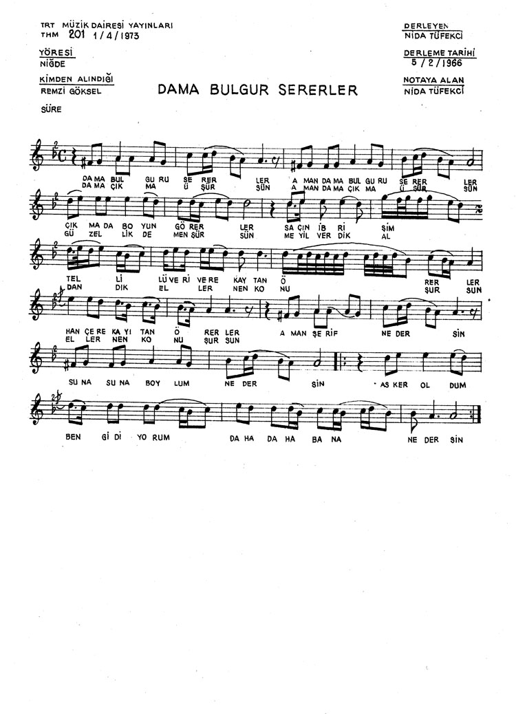 Bu türkünün notasında, sözlerinde veya örnek icrasında bir eksiklik yahut yanlışlık tespit ederseniz, e-mail ile veya WhatsApp hattından bildirim yaparak katkıda bulunabilirsiniz.