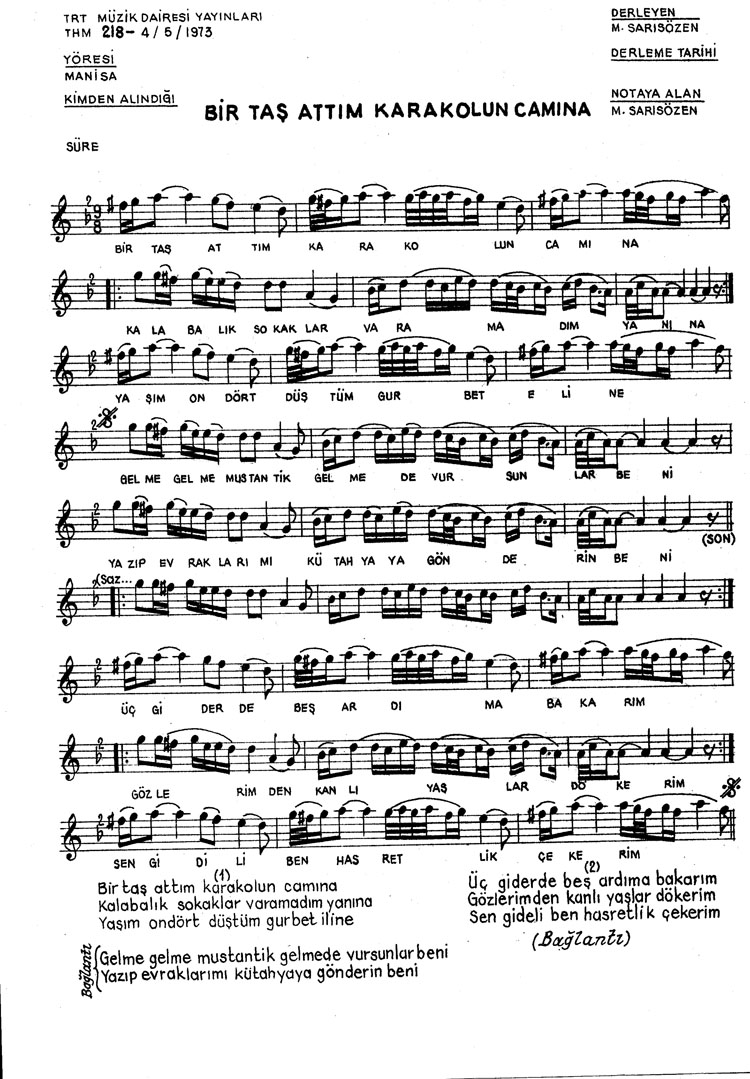 Bu türkünün notasında, sözlerinde veya örnek icrasında bir eksiklik yahut yanlışlık tespit ederseniz, e-mail ile veya WhatsApp hattından bildirim yaparak katkıda bulunabilirsiniz.