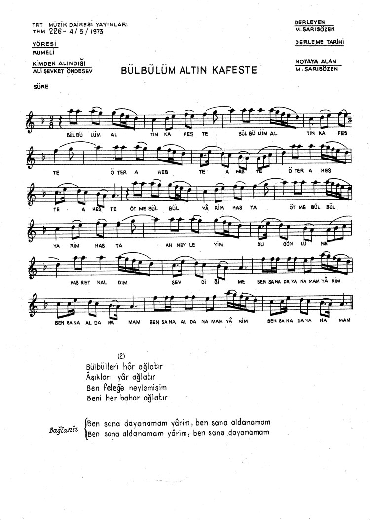 Bu türkünün notasında, sözlerinde veya örnek icrasında bir eksiklik yahut yanlışlık tespit ederseniz, e-mail ile veya WhatsApp hattından bildirim yaparak katkıda bulunabilirsiniz.