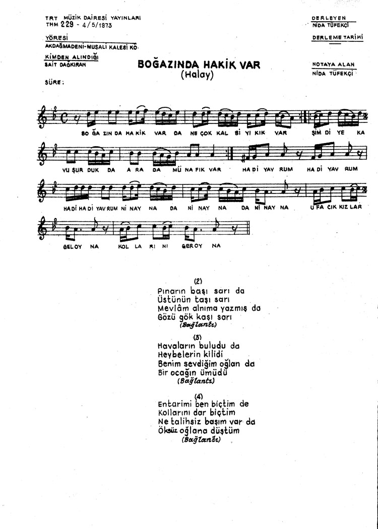 Bu türkünün notasında, sözlerinde veya örnek icrasında bir eksiklik yahut yanlışlık tespit ederseniz, e-mail ile veya WhatsApp hattından bildirim yaparak katkıda bulunabilirsiniz.