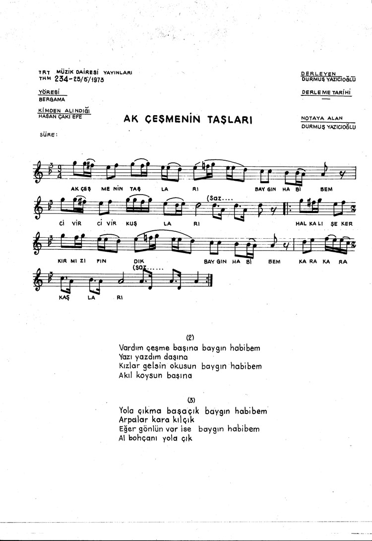 Bu türkünün notasında, sözlerinde veya örnek icrasında bir eksiklik yahut yanlışlık tespit ederseniz, e-mail ile veya WhatsApp hattından bildirim yaparak katkıda bulunabilirsiniz.