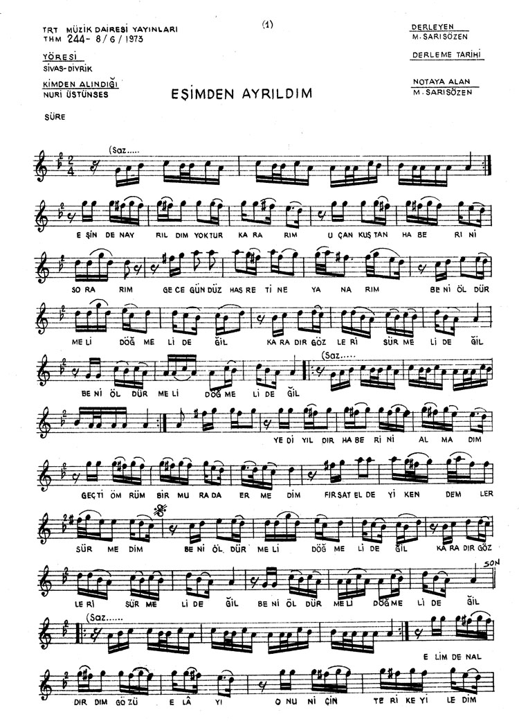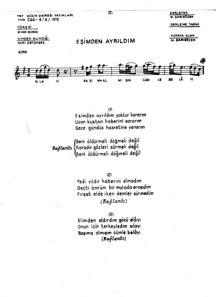 Bu türkünün notasında, sözlerinde veya örnek icrasında bir eksiklik yahut yanlışlık tespit ederseniz, e-mail ile veya WhatsApp hattından bildirim yaparak katkıda bulunabilirsiniz.