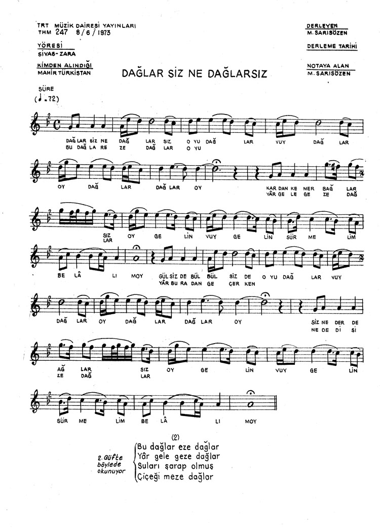Dağlar siz ne dağlarsız (Rep.No: 247)