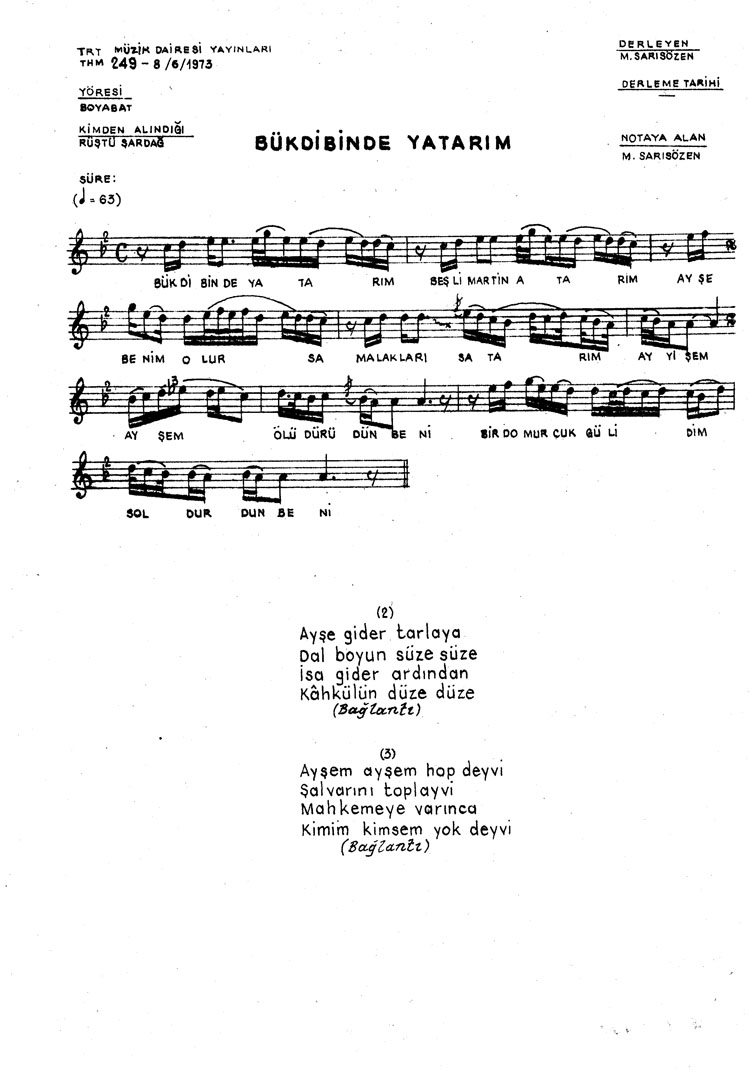 Bu türkünün notasında, sözlerinde veya örnek icrasında bir eksiklik yahut yanlışlık tespit ederseniz, e-mail ile veya WhatsApp hattından bildirim yaparak katkıda bulunabilirsiniz.