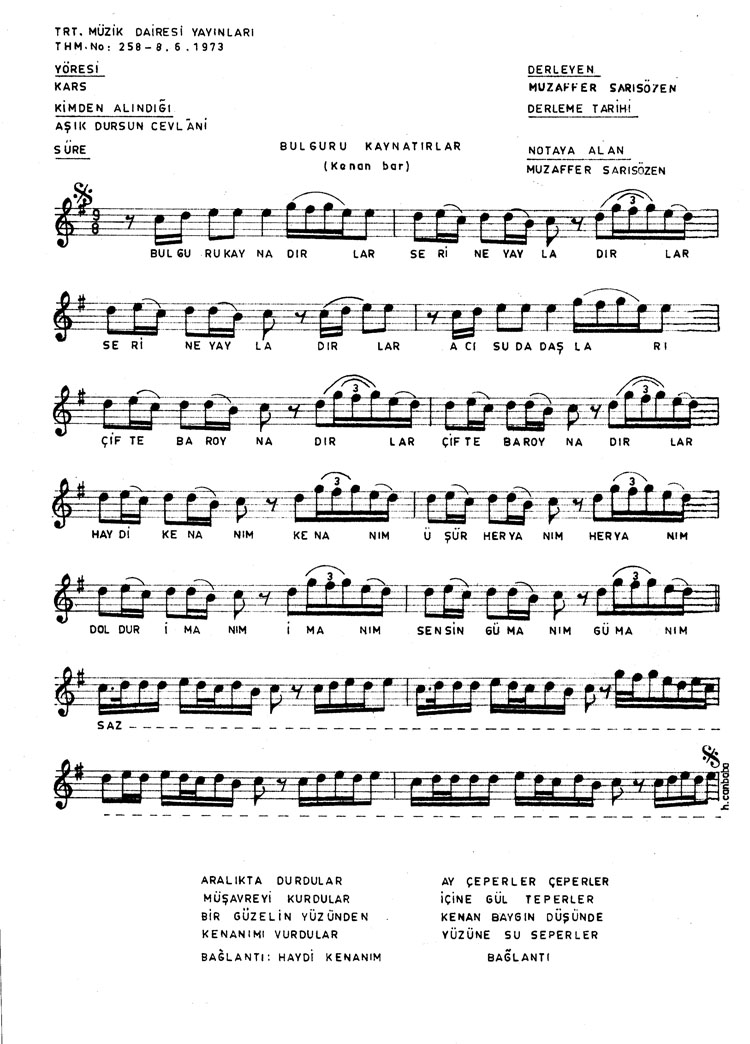Bu türkünün notasında, sözlerinde veya örnek icrasında bir eksiklik yahut yanlışlık tespit ederseniz, e-mail ile veya WhatsApp hattından bildirim yaparak katkıda bulunabilirsiniz.
