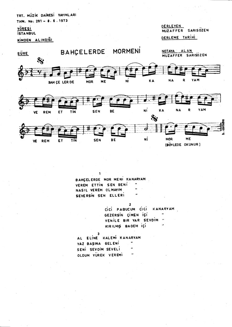 Bu türkünün notasında, sözlerinde veya örnek icrasında bir eksiklik yahut yanlışlık tespit ederseniz, e-mail ile veya WhatsApp hattından bildirim yaparak katkıda bulunabilirsiniz.