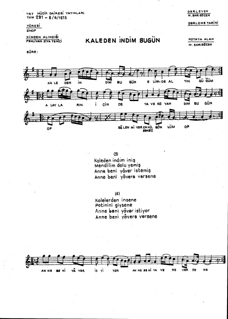 Kaleden indim bugün (Rep.No: 291)