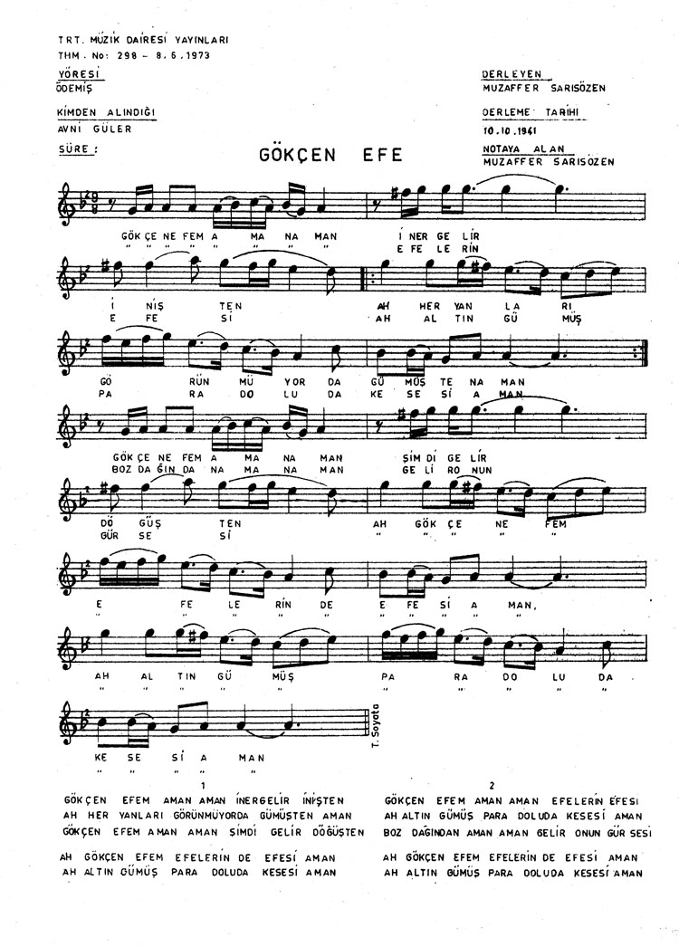 Gökçen efem iner gelir inişten (Rep.No: 298)