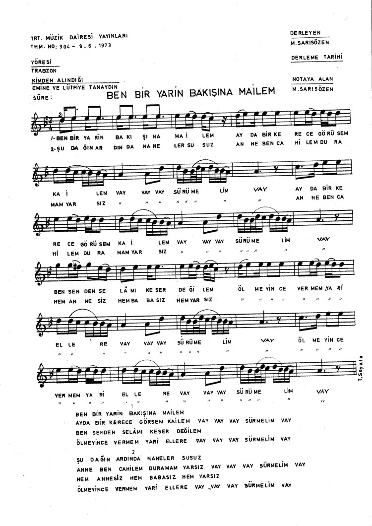 Ben bir yarin bakışına mailem (Rep.No: 304)