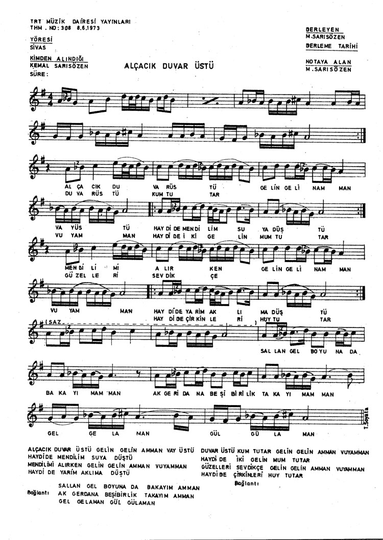 Bu türkünün notasında, sözlerinde veya örnek icrasında bir eksiklik yahut yanlışlık tespit ederseniz, e-mail ile veya WhatsApp hattından bildirim yaparak katkıda bulunabilirsiniz.