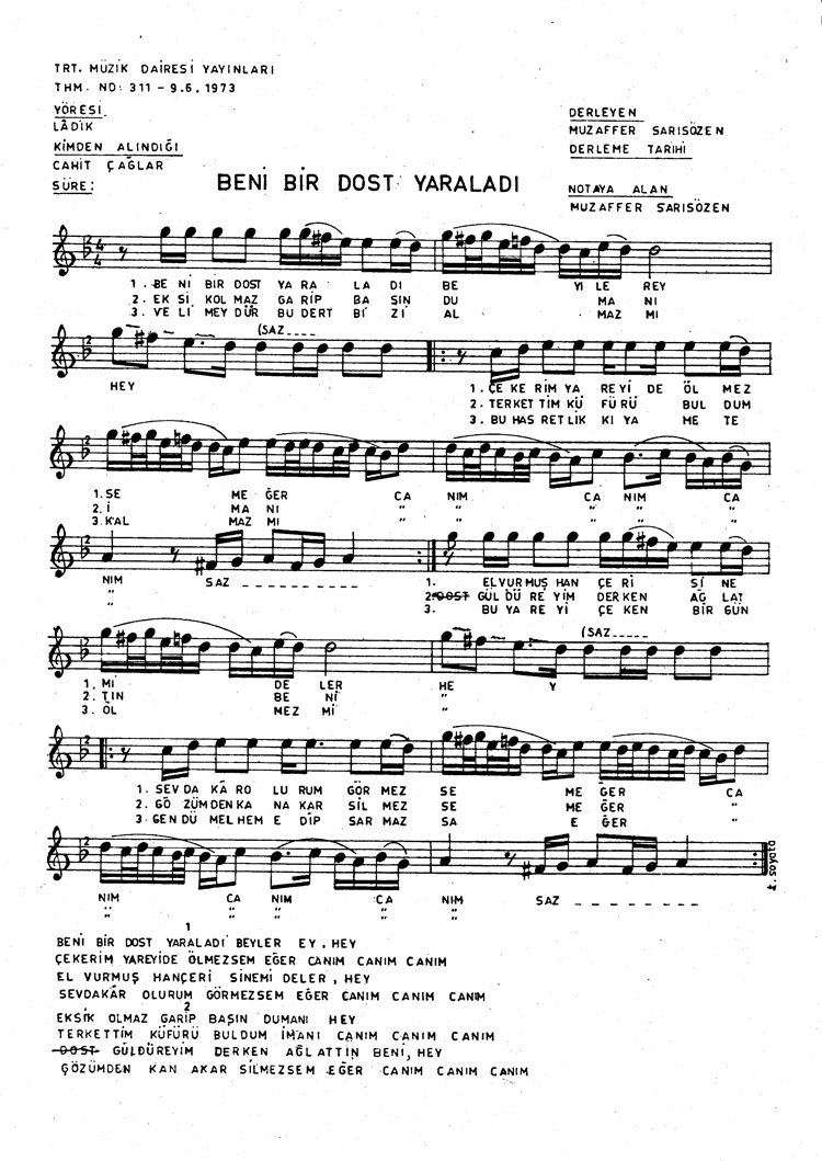 Bu türkünün notasında, sözlerinde veya örnek icrasında bir eksiklik yahut yanlışlık tespit ederseniz, e-mail ile veya WhatsApp hattından bildirim yaparak katkıda bulunabilirsiniz.