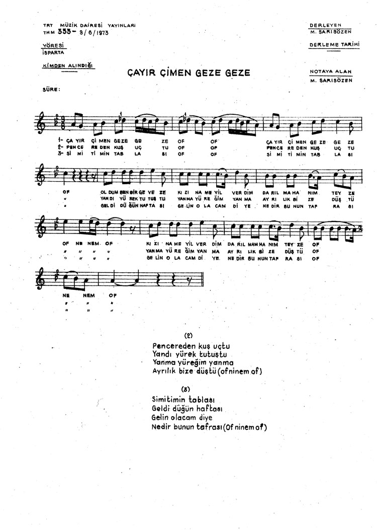 Bu türkünün notasında, sözlerinde veya örnek icrasında bir eksiklik yahut yanlışlık tespit ederseniz, e-mail ile veya WhatsApp hattından bildirim yaparak katkıda bulunabilirsiniz.