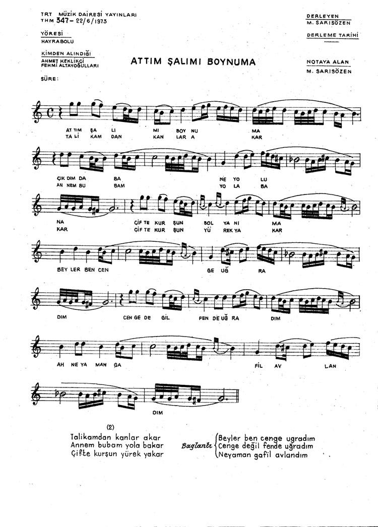 Bu türkünün notasında, sözlerinde veya örnek icrasında bir eksiklik yahut yanlışlık tespit ederseniz, e-mail ile veya WhatsApp hattından bildirim yaparak katkıda bulunabilirsiniz.