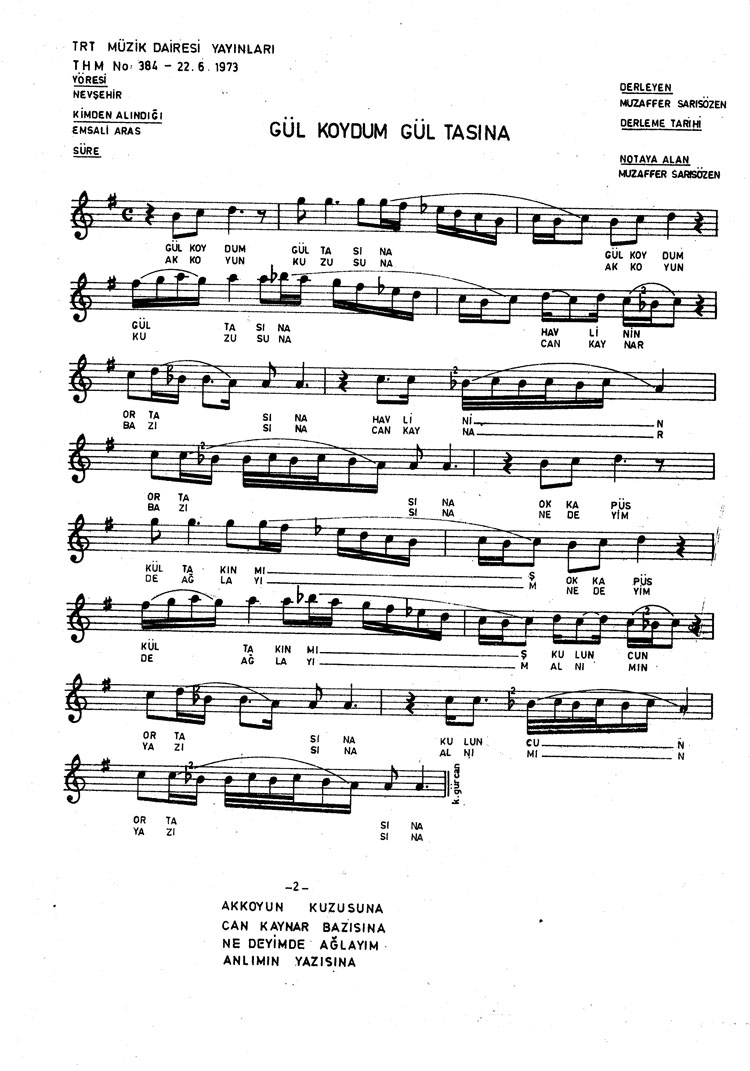 Gül koydum gül tasına (Rep.No: 384)