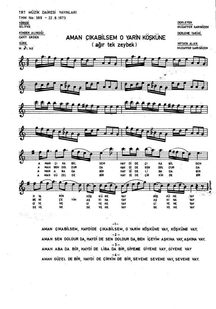 Çıkabilsem o yarin köşküne (Rep.No: 389)