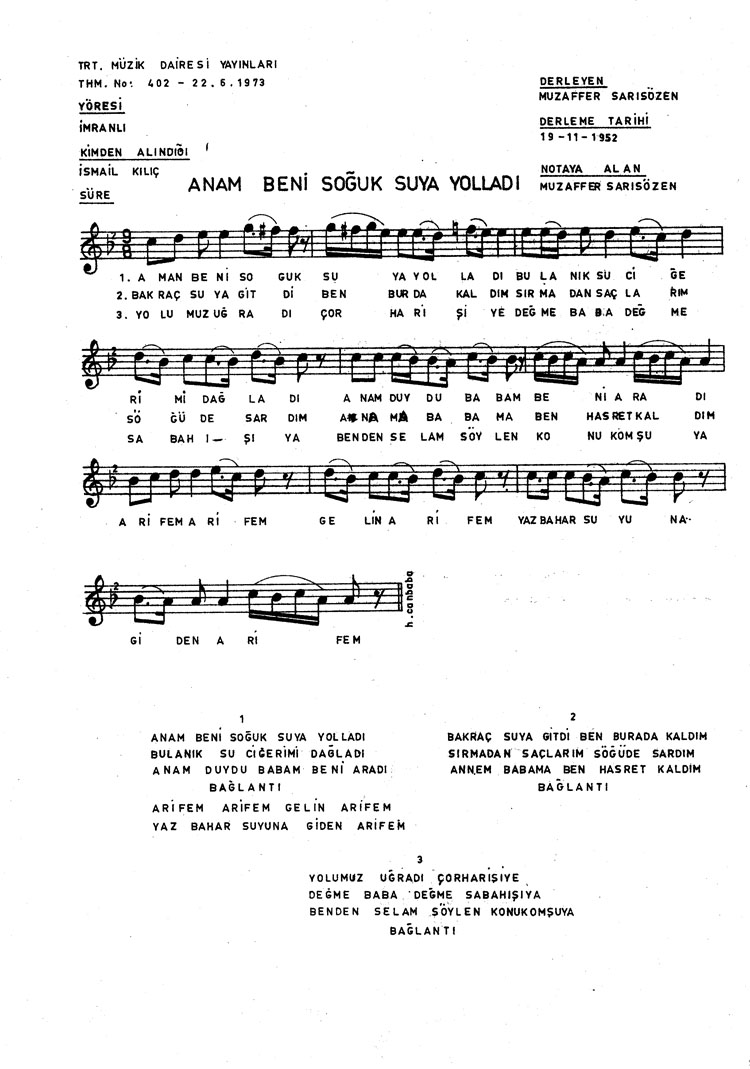 Bu türkünün notasında, sözlerinde veya örnek icrasında bir eksiklik yahut yanlışlık tespit ederseniz, e-mail ile veya WhatsApp hattından bildirim yaparak katkıda bulunabilirsiniz.