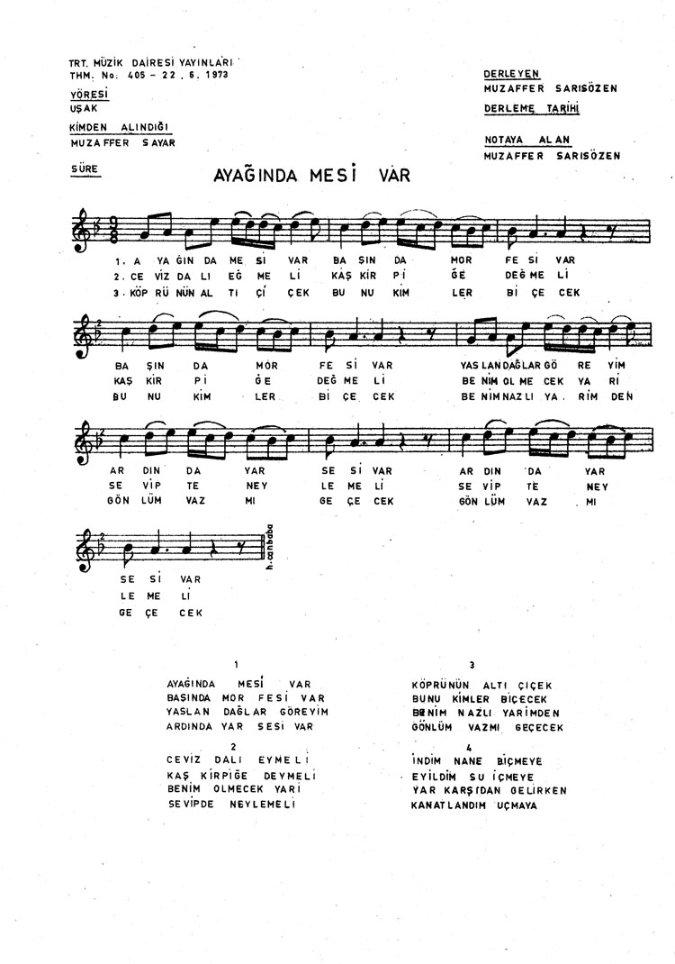 Bu türkünün notasında, sözlerinde veya örnek icrasında bir eksiklik yahut yanlışlık tespit ederseniz, e-mail ile veya WhatsApp hattından bildirim yaparak katkıda bulunabilirsiniz.
