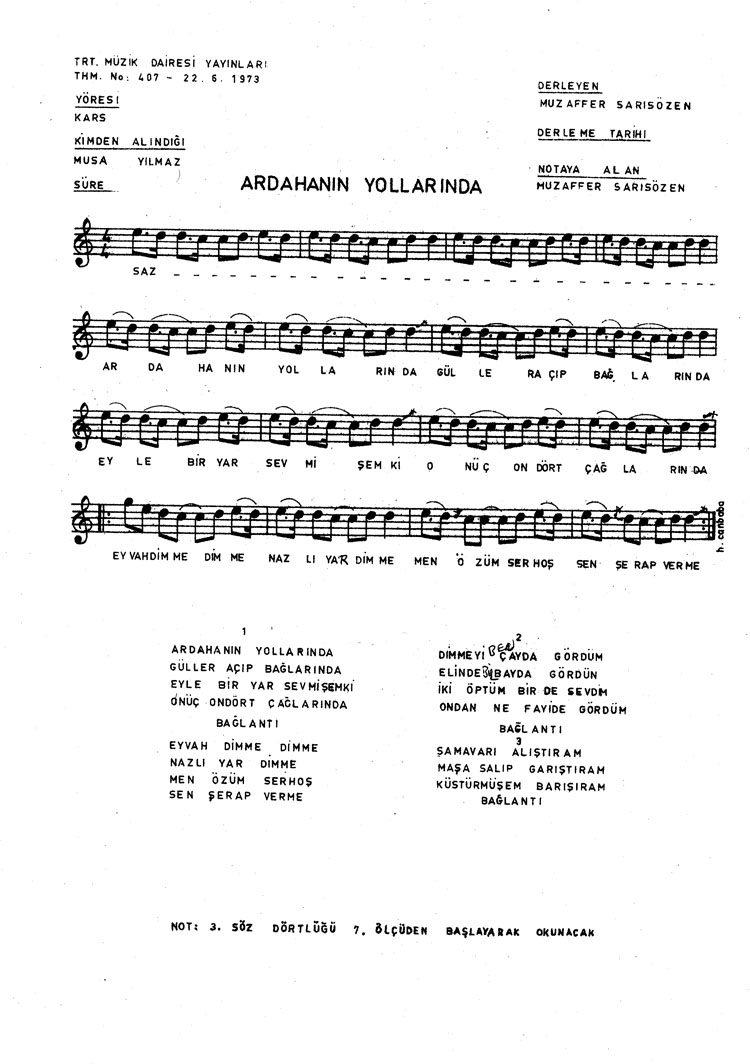 Bu türkünün notasında, sözlerinde veya örnek icrasında bir eksiklik yahut yanlışlık tespit ederseniz, e-mail ile veya WhatsApp hattından bildirim yaparak katkıda bulunabilirsiniz.