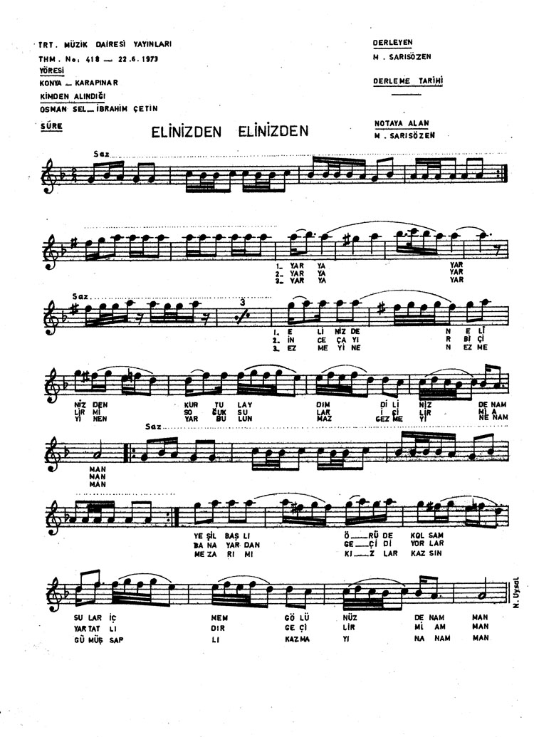 Bu türkünün notasında, sözlerinde veya örnek icrasında bir eksiklik yahut yanlışlık tespit ederseniz, e-mail ile veya WhatsApp hattından bildirim yaparak katkıda bulunabilirsiniz.
