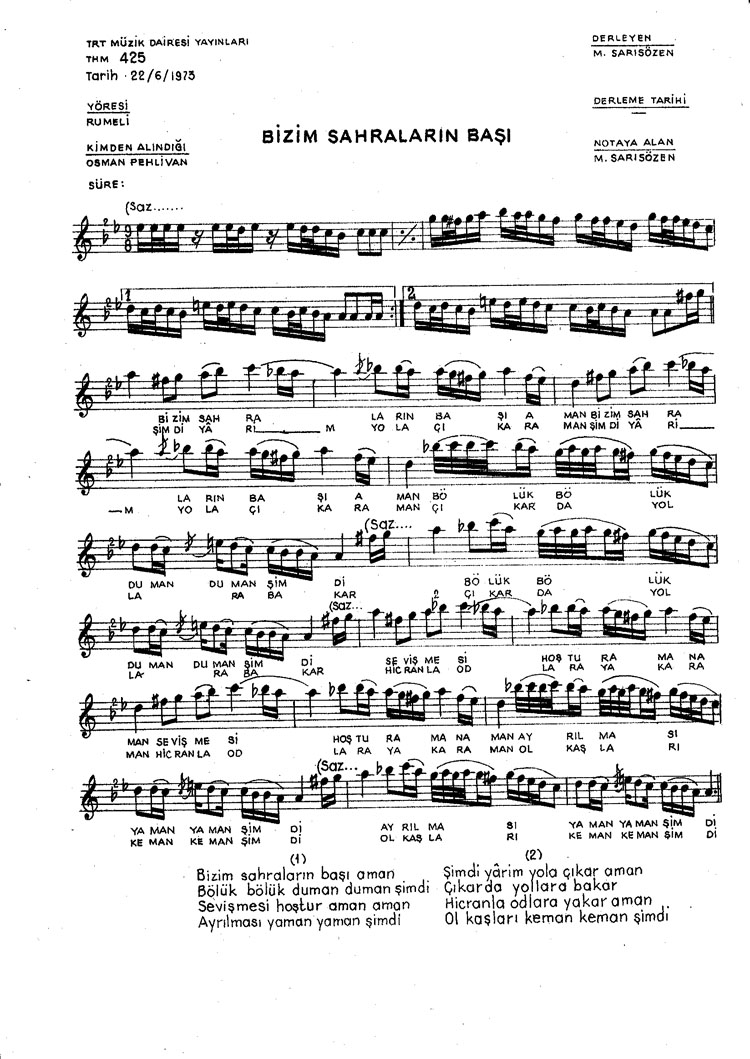Bu türkünün notasında, sözlerinde veya örnek icrasında bir eksiklik yahut yanlışlık tespit ederseniz, e-mail ile veya WhatsApp hattından bildirim yaparak katkıda bulunabilirsiniz.