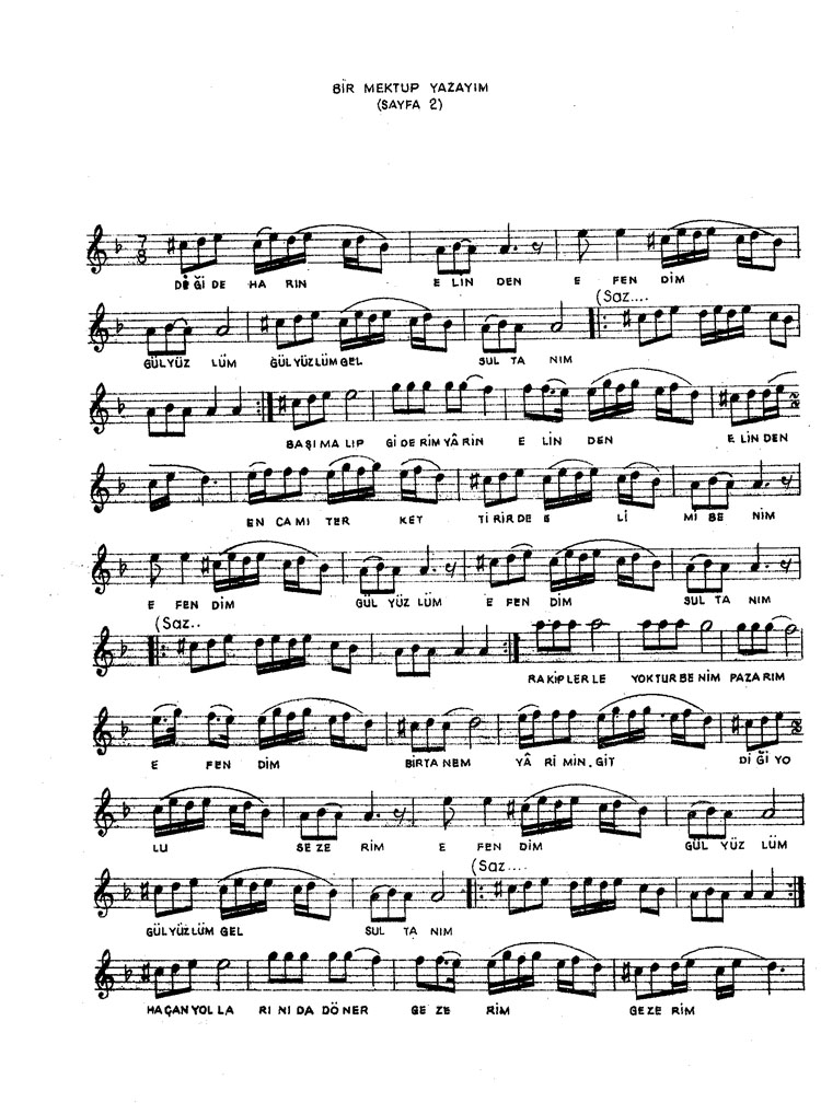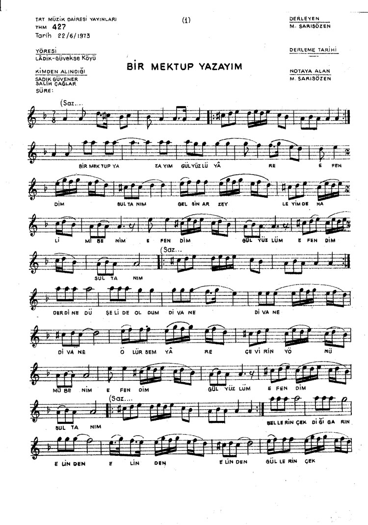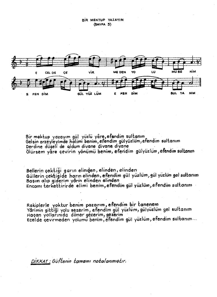 Bir mektup yazayım gül yüzlü yare (Rep.No: 427)