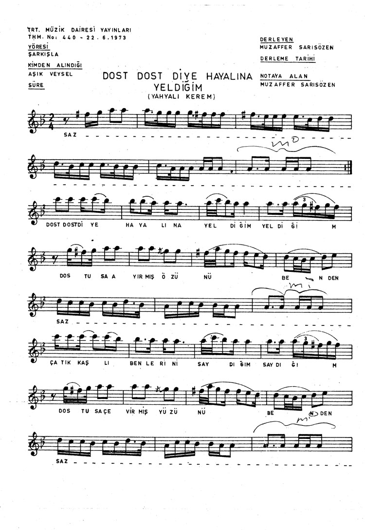 Dost dost diye hayalına yeldiğim (Rep.No: 440)