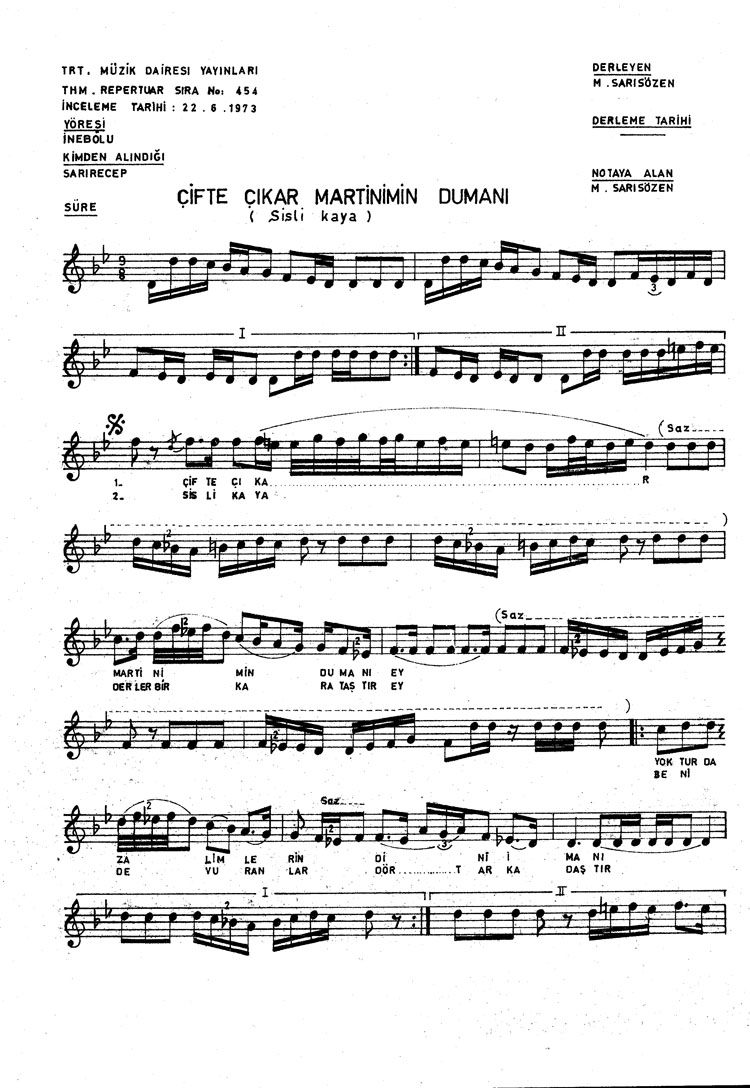 Bu türkünün notasında, sözlerinde veya örnek icrasında bir eksiklik yahut yanlışlık tespit ederseniz, e-mail ile veya WhatsApp hattından bildirim yaparak katkıda bulunabilirsiniz.